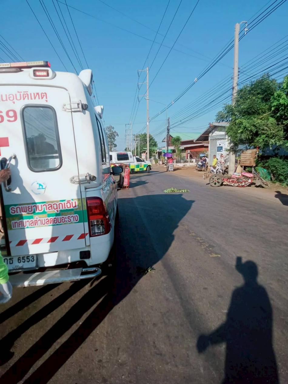 ‎รับแจ้งจาก รพ.หนองกี่ให้ออกตรวจสอบเหตุ ว.40 จยย.ชน รถกระบะ พิกัด สี่แยกบ้านโนนขี้เหล็ก ต.ดอนอะราง เบื้องต้น บาดเจ็บชาย 2 ราย 1 ราย