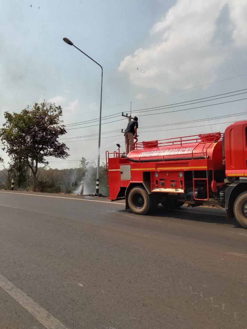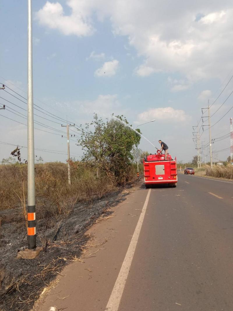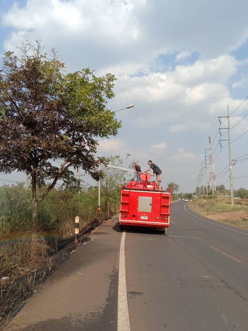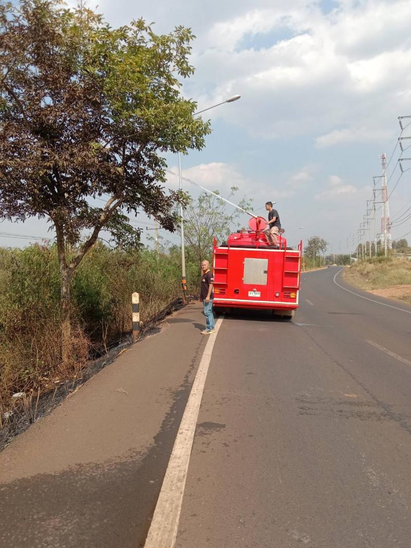 การออกดับเพลิง ไฟไหม้ข้างถนนบริเวณถนนข้างเขื่อนห้วยยาง หมู่ 15 บ้านดอนอะราง