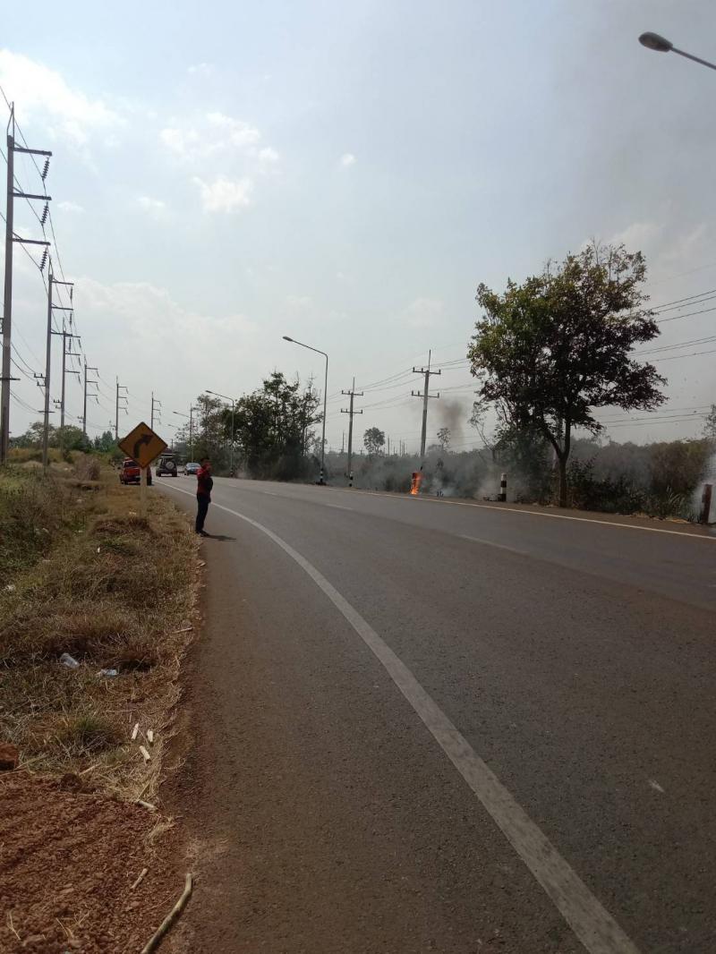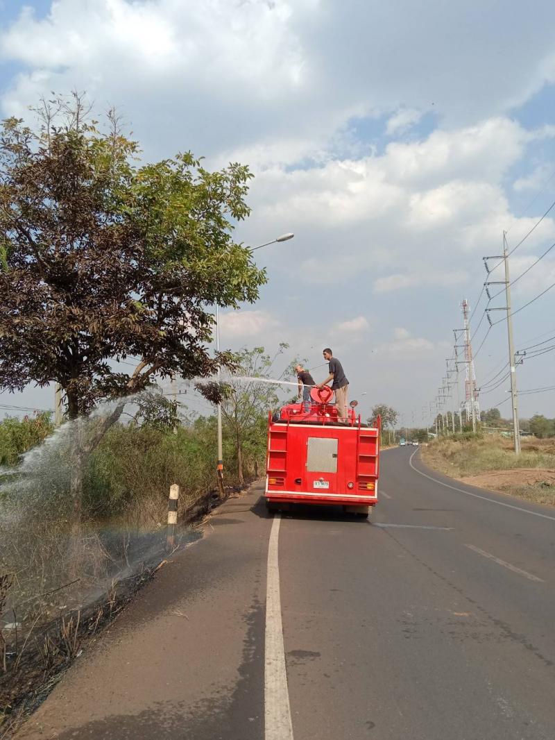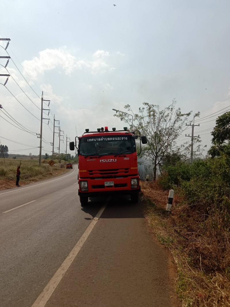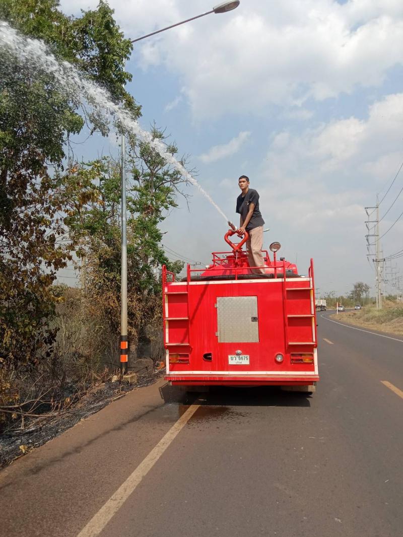 การออกดับเพลิง ไฟไหม้ข้างถนนบริเวณถนนข้างเขื่อนห้วยยาง หมู่ 15 บ้านดอนอะราง