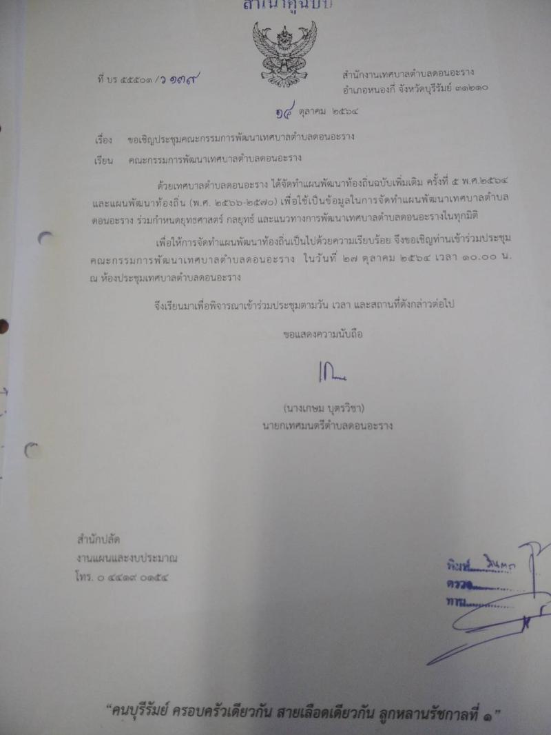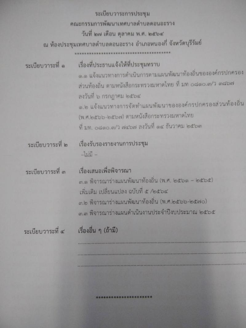 ประชุมคณะกรรมการพัฒนาเทศบาลตำบลดอนอะราง ณ ห้องประชุมเทศบาลตำบลดอนอะราง