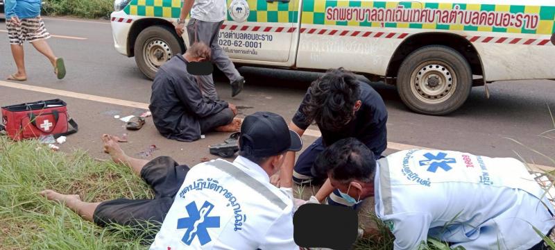 กู้ชีพได้รับแจ้งให้ออกตรวจสอบเหตุจยย.ล้มเอง พิกัดทางไปดอนแขวน พบผู้บาดเจ็บชาย 2 ราย