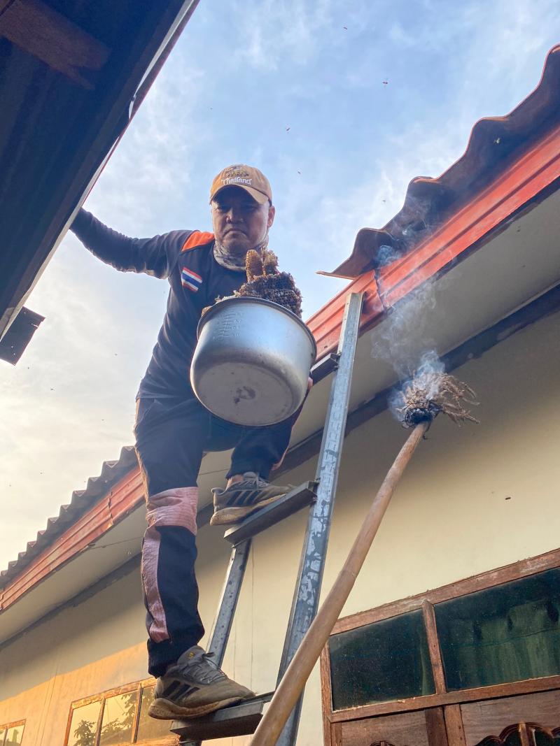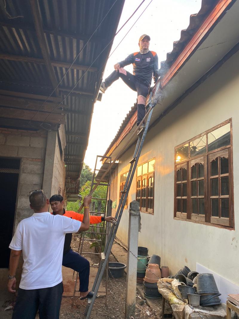ได้รับแจ้งเหตุจาก ชาวบ้าน หมู่15 ว่ามีรังผึ่งขนาดใหญ่อยู่ใต้หลังคาบ้าน จึงใด้นำรถตรวจการ ออกตรวจสอบฯ
